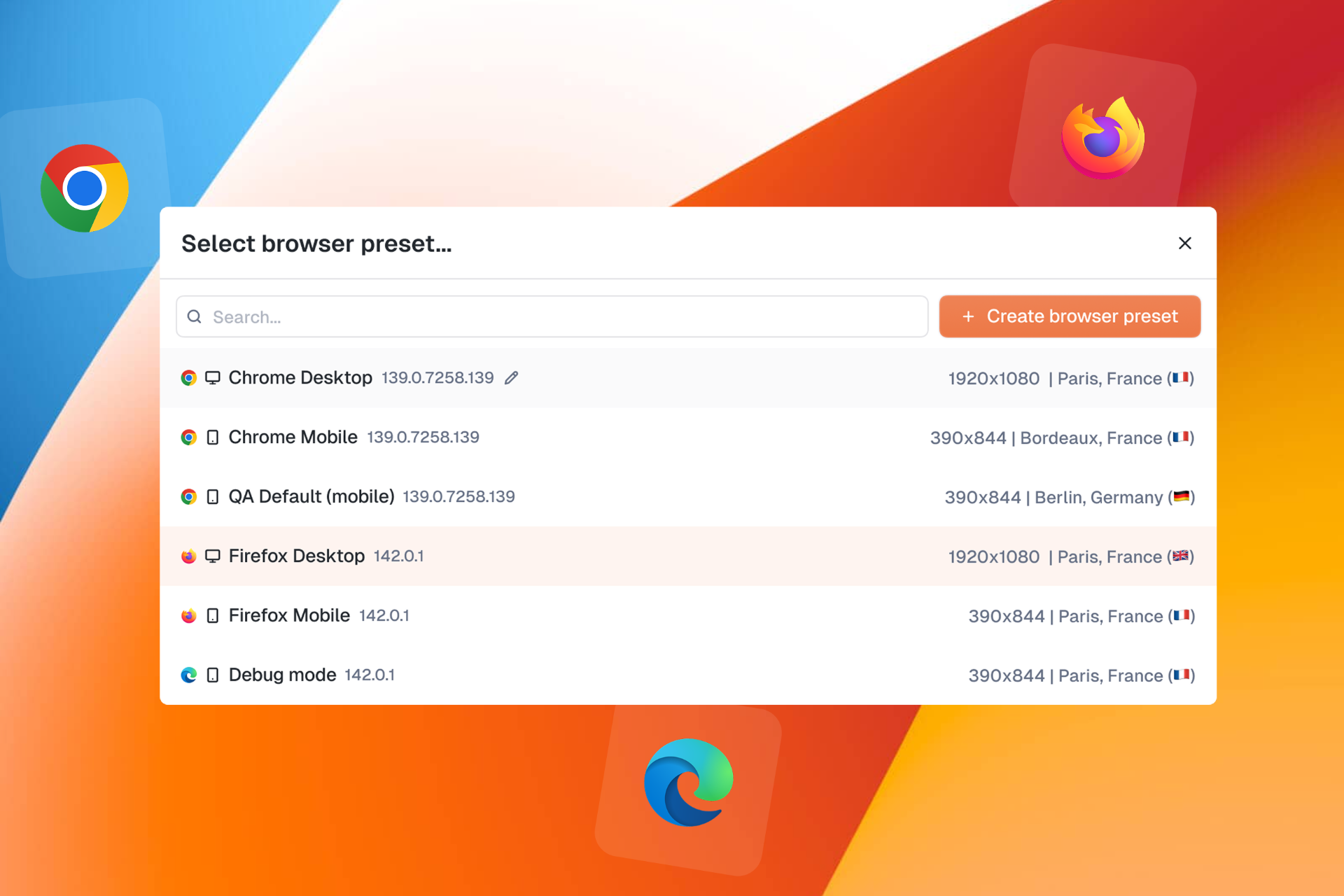 Browser Presets let you configure and save browser configurations including: